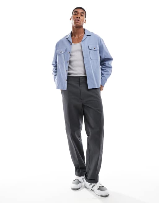 ASOS DESIGN – Chabrowa pudełkowa kurtka koszulowa z kołnierzykiem kubańskim