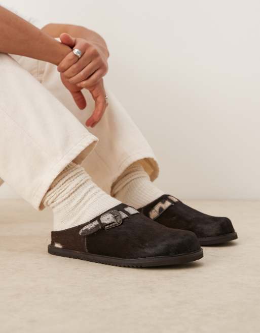 ASOS DESIGN – Chodaki premium ze sprzączką we wzór w krowie łaty