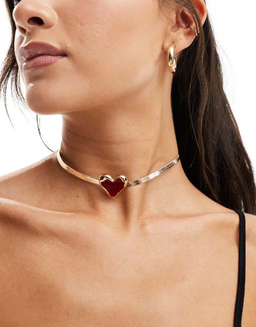 ASOS DESIGN – Choker z łańcuszka o splocie żmijki w złotym kolorze z czerwonym sercem