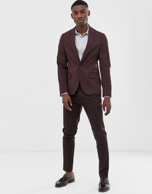 ASOS DESIGN – Ciemnobordowy obcisły garnitur