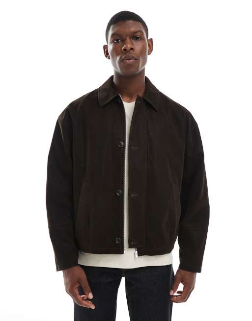 ASOS DESIGN – Ciemnobrązowa kurtka harrington z imitacji skóry