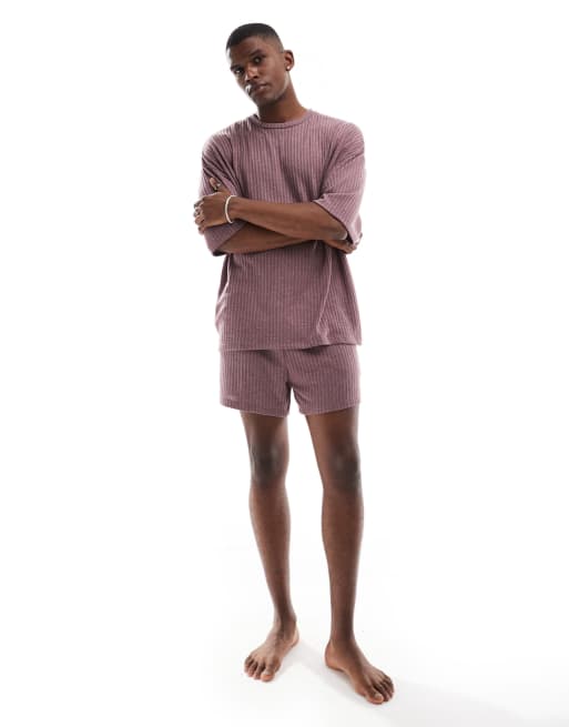 ASOS DESIGN – Ciemnobrązowa szczotkowana prążkowana piżama
