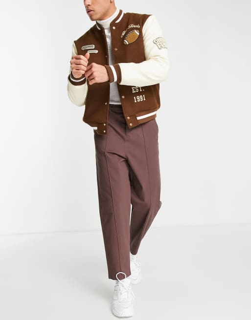 ASOS DESIGN – Ciemnobrązowe chinosy oversize ze zwężanymi nogawkami i ozdobnymi szczypankami