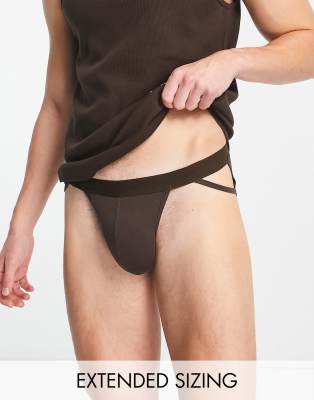 ASOS DESIGN – Ciemnobrązowe dżersejowe slipy z paskami