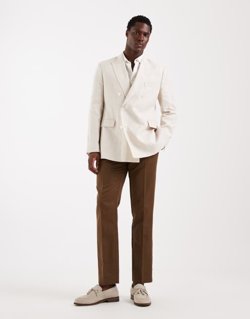 ASOS DESIGN – Ciemnobrązowe eleganckie spodnie o dopasowanym kroju z dużą zawartością lnu