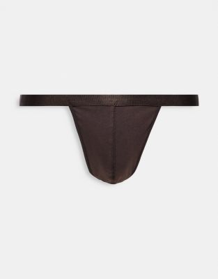 ASOS DESIGN – Ciemnobrązowe stringi z paskami z boku