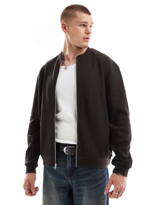 ASOS DESIGN – Ciemnobrązowy kardigan oversize o waflowej teksturze