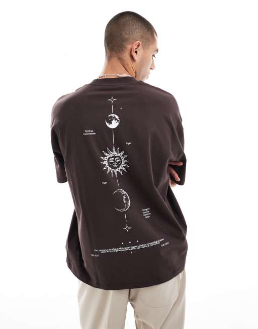ASOS DESIGN – Ciemnobrązowy T-shirt oversize z astrologicznym nadrukiem na plecach