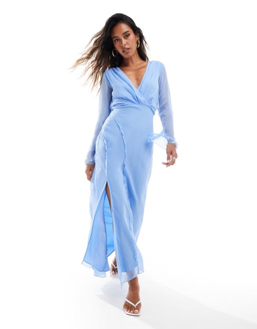 ASOS DESIGN – Ciemnoniebieska sukienka midi z kopertowym przodem i ozdobnymi szwami
