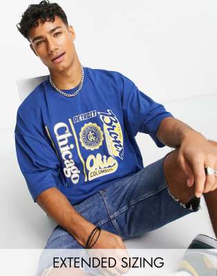 ASOS DESIGN – Ciemnoniebieski T-shirt oversize z nadrukiem Chicago