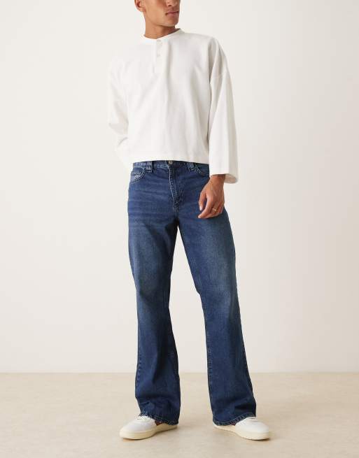 ASOS DESIGN – Ciemnoniebieskie jeansy z rozszerzanymi nogawkami