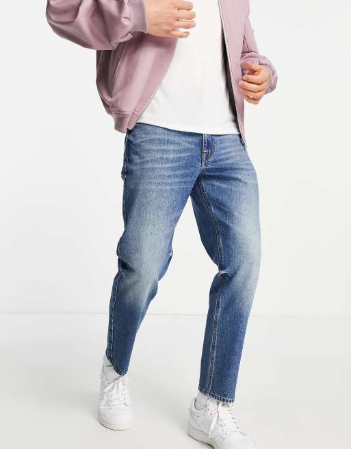 ASOS DESIGN – Ciemnoniebieskie klasyczne jeansy z efektem sprania