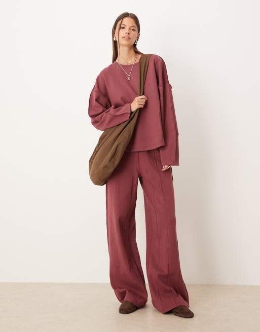 ASOS DESIGN – Ciemnoróżowy zestaw z dzianiny interlock