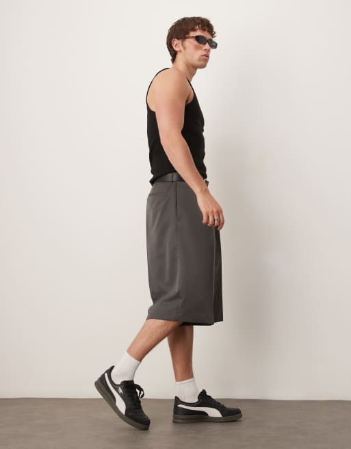 ASOS DESIGN – Ciemnoszare eleganckie szorty bermudy z zakładkami z przodu