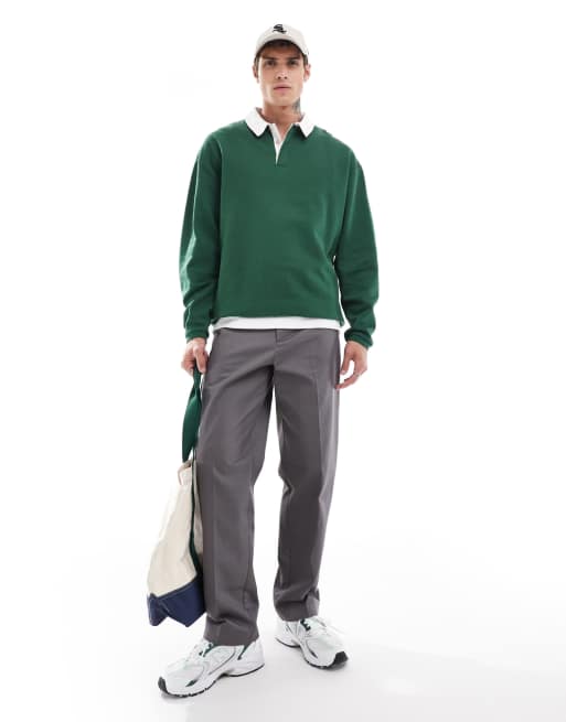 ASOS DESIGN – Ciemnozielona bluza dresowa oversize z kołnierzykiem polo w stylu rugby