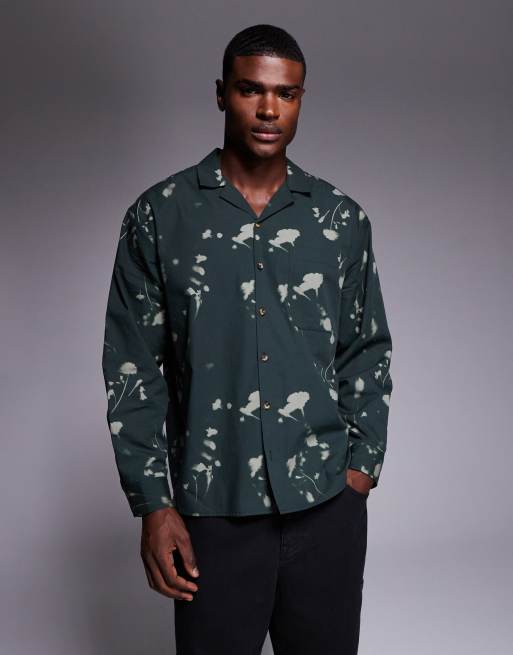 ASOS DESIGN – Ciemnozielona koszula oversize z kołnierzykiem kubańskim i kwiatowym wzorem