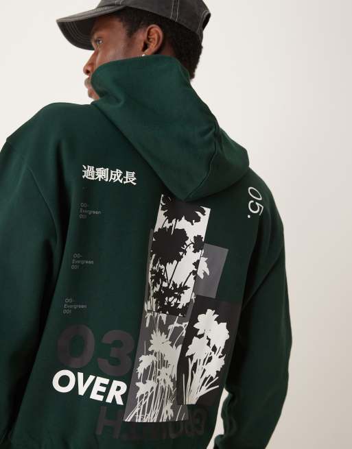 ASOS DESIGN – Ciemnozielona pudełkowa bluza z kapturem i kwiatowym nadrukiem na plecach