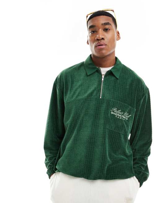 ASOS DESIGN – Ciemnozielona teksturowana bluza oversize z zamkiem do połowy długości