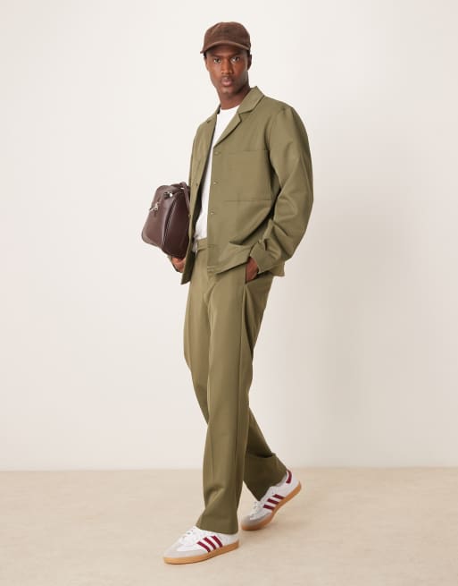 ASOS DESIGN – Ciemnozielone eleganckie spodnie z prostymi nogawkami i elastyczną talią, część zestawu