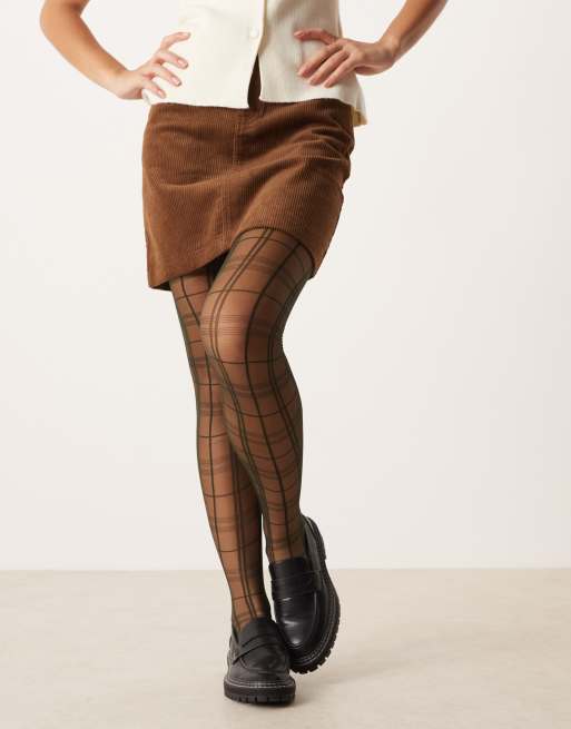 ASOS DESIGN – Ciemnozielone rajstopy w kratkę