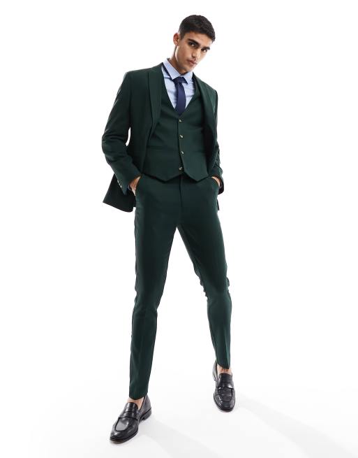ASOS DESIGN – Ciemnozielone ślubne spodnie garniturowe o obcisłym kroju, z materiału o drobnej strukturze