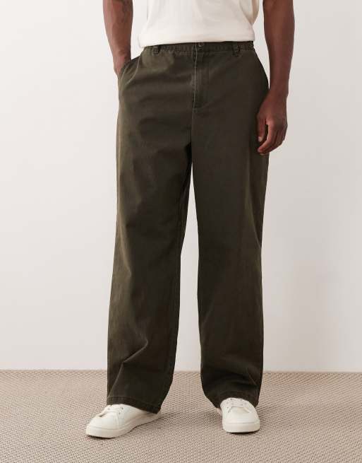 ASOS DESIGN – Ciemnozielone szerokie spodnie garniturowe z elastyczną wstawką w talii