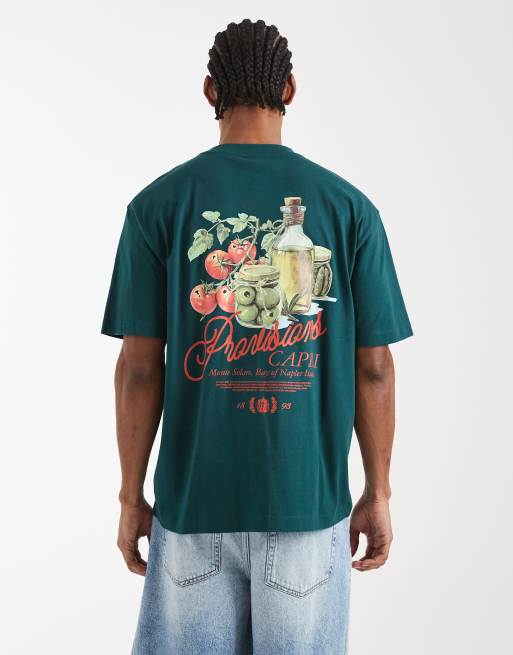 ASOS DESIGN – Ciemnozielony luźny T-shirt z nadrukiem „Capri”