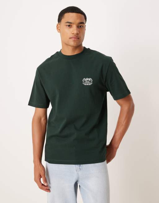 ASOS DESIGN – Ciemnozielony T-shirt o luźnym kroju z flokowanym nadrukiem