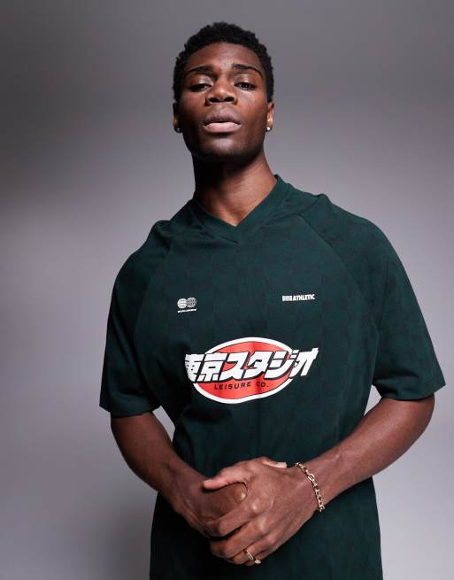 ASOS DESIGN – Ciemnozielony T-shirt oversize z dekoltem w szpic i sportową grafiką