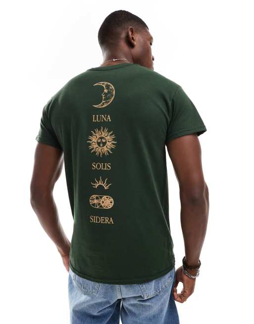 ASOS DESIGN – Ciemnozielony T-shirt z astronomicznym nadrukiem na plecach