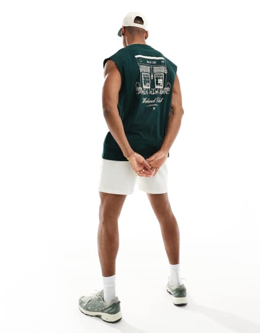 ASOS DESIGN – Ciemnozielony top oversize bez rękawów, z nadrukiem kawiarni na plecach