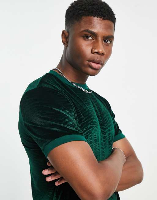 ASOS DESIGN – Ciemnozielony welurowy T-shirt w zwierzęcy wzór