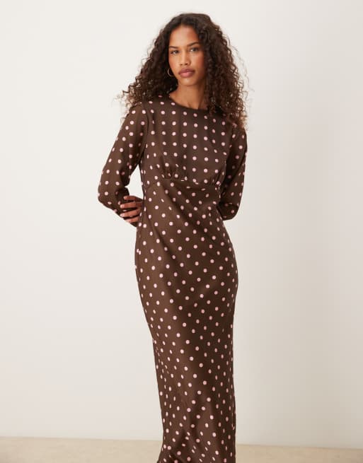 ASOS DESIGN – Cięta ze skosu sukienka maxi z podkreślonym biustem, w groszki