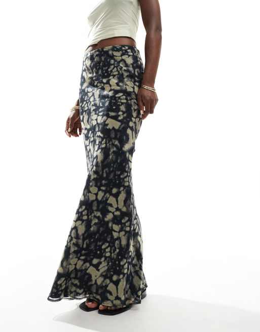 ASOS DESIGN – Cięta ze skosu szyfonowa spódnica maxi a rozmyty abstrakcyjny wzór