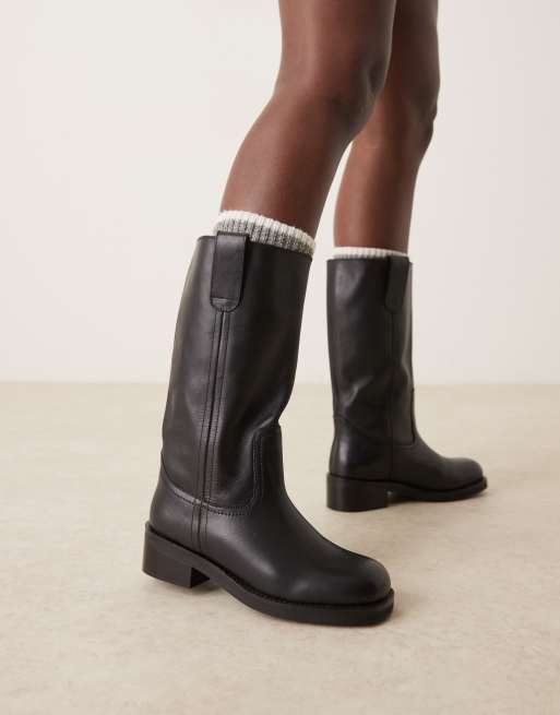 ASOS DESIGN – Cindy – Wsuwane skórzane buty w czarnym kolorze