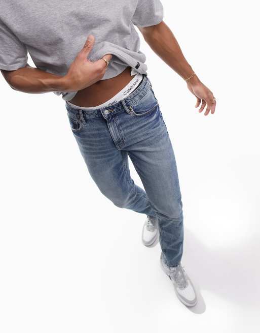 ASOS DESIGN – Cone Mill – Niebieskie dopasowane jeansy ze stretchem o kroju typu „American Classic”