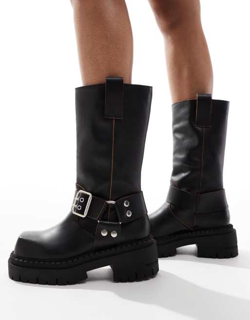 ASOS DESIGN – Conquest – Czarne botki ze skóry premium w stylu biker
