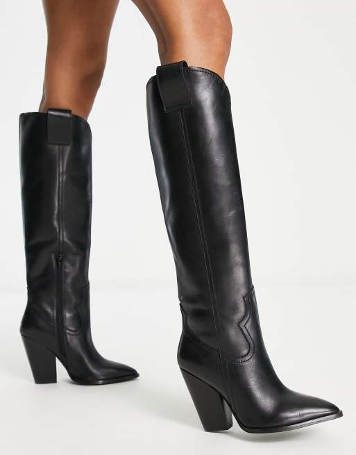 ASOS DESIGN – Coral – Czarne skórzane botki kowbojskie
