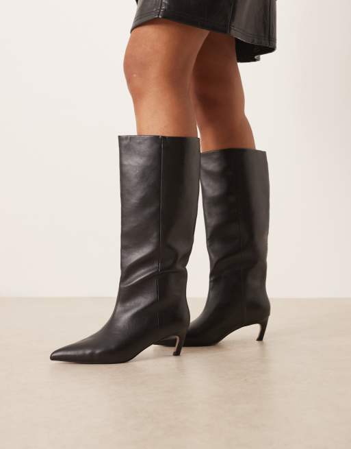 ASOS DESIGN Curve – Carmel – Wsuwane czarne kozaki do kolan na obcasach kaczuszkach