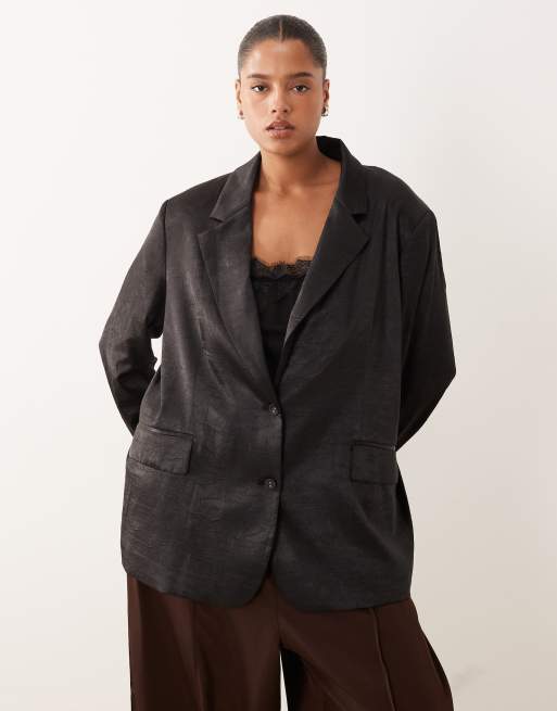 ASOS DESIGN Curve – Dopasowana nieusztywniana satynowa marynarka w kolorze czarnym