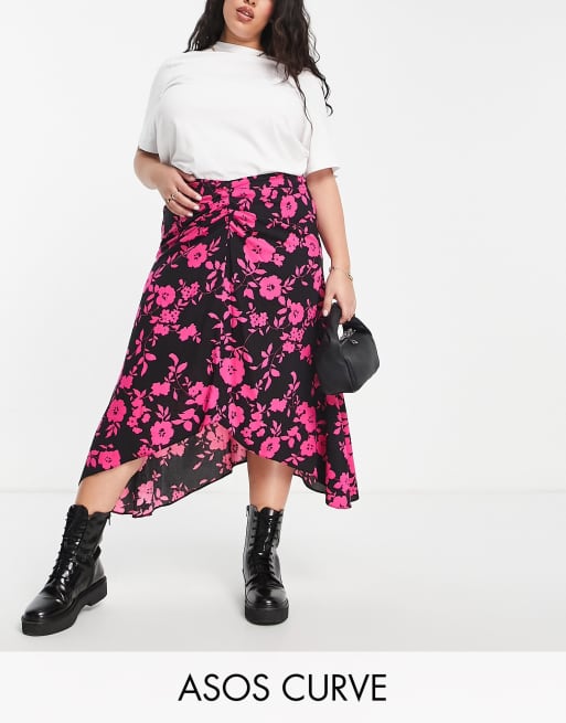 ASOS DESIGN Curve – Marszczona spódnica midi w różowe kwiaty