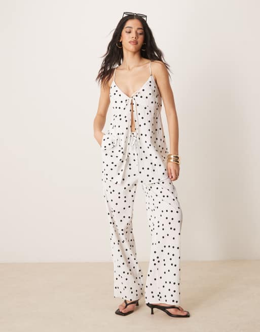 ASOS DESIGN Curve – Satynowy zestaw w kolorze khaki: góra ze złotym łańcuszkiem i spodnie