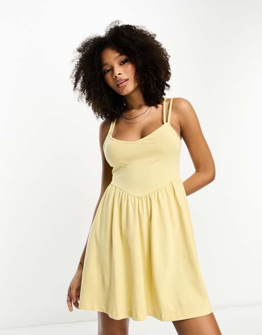 ASOS DESIGN – Cytrynowa sukienka mini na ramiączkach z ozdobnym szwem V w talii