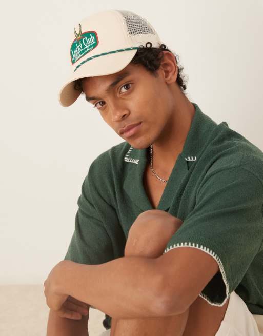 ASOS DESIGN – Czapka trucker w kolorze ecru z haftem