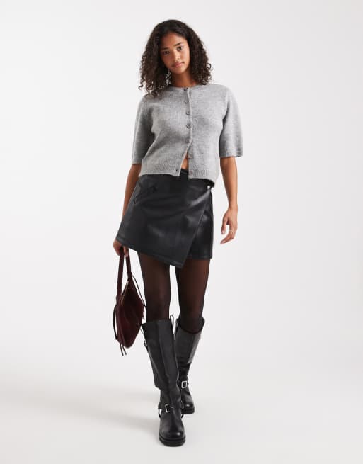 ASOS DESIGN – Czarna asymetryczna kopertowa spódnica mini z imitacji skóry