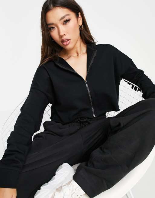 ASOS DESIGN – Czarna bardzo krótka bluza z kapturem zapinana na zamek