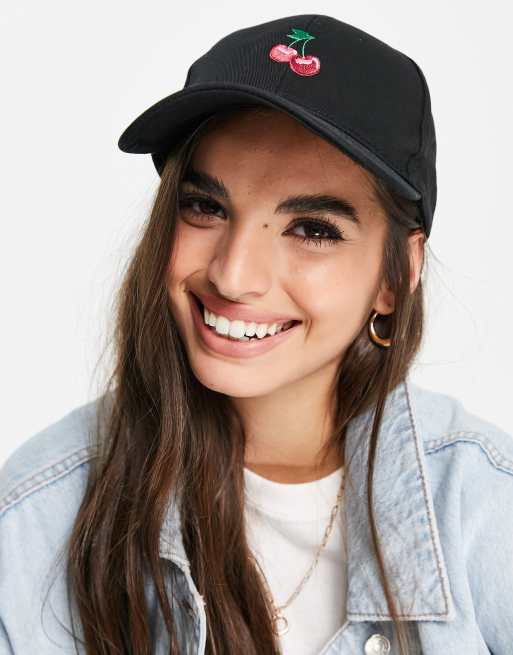 ASOS DESIGN – Czarna baseballowa czapka z daszkiem z motywem wiśni