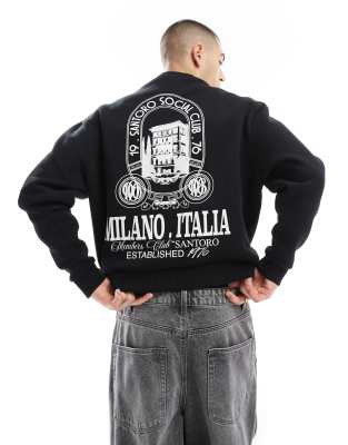 ASOS DESIGN – Czarna bluza o pudełkowym kroju z nadrukiem na plecach