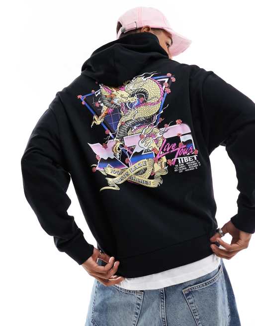 ASOS DESIGN – Czarna bluza oversize z kapturem i fotograficznym nadrukiem na plecach