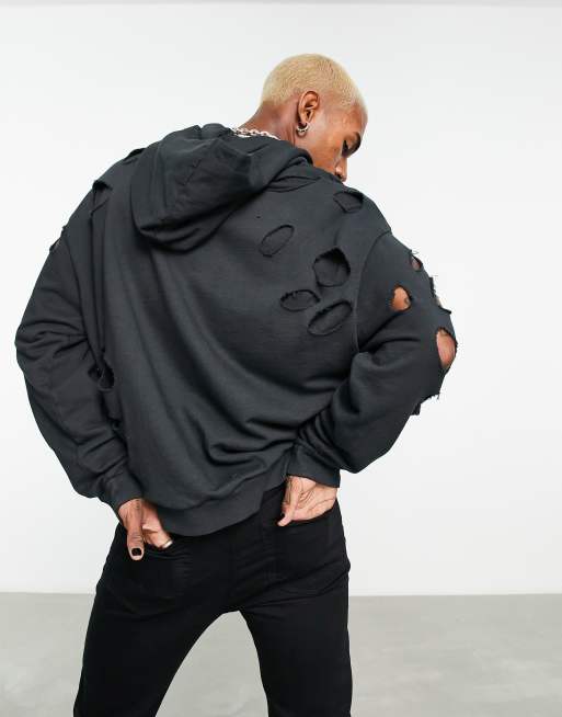 ASOS DESIGN – Czarna bluza oversize z kapturem i przetarciami